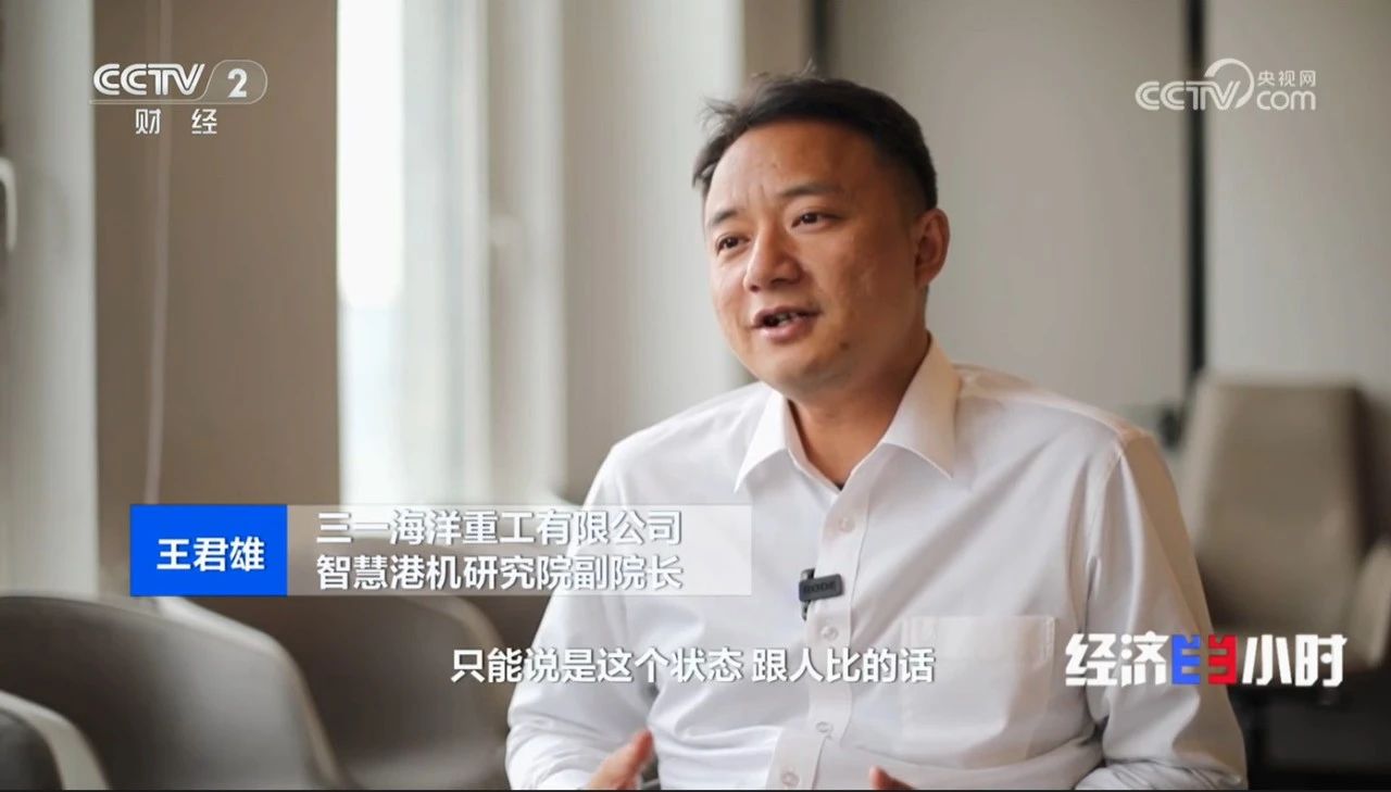 三一海洋重工有限公司智慧港机研究院副院长 王君雄:它是什么呢?就是在一定程度上,我们可以做出来、能用了,只能说是这个状态。跟人比的话,还是有大概是在80%左右的一个效率。