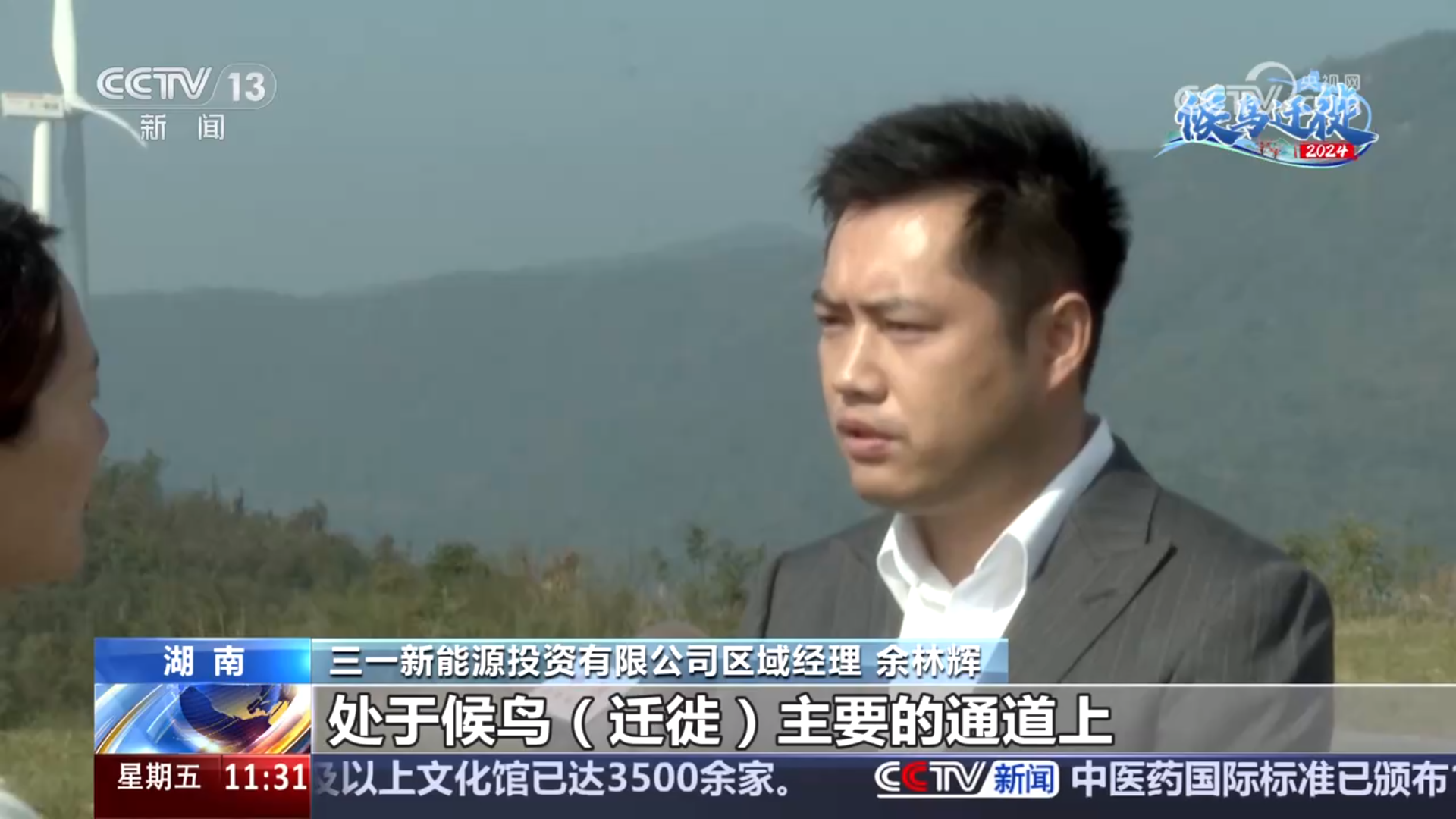11月8日,央视《新闻直播间》播出新闻——2024候鸟迁徙 五省份联合护鸟 守护“千年鸟道”。报道特别关注了三一重能宁乡神仙岭风电场响应湖南省林业局建立的涉林大型工程生态感知系统,精准科学守护候鸟迁徙通道的安全和畅通。