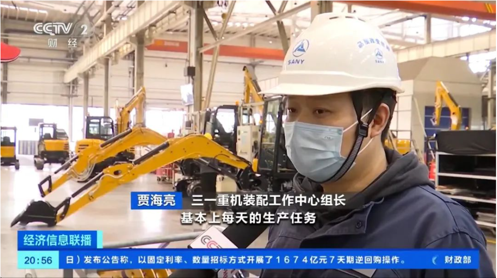 报道通过引用挖掘机指数,并深入探访三一重机的生产车间,生动展现国内挖掘机生产企业满负荷运转、全力投入生产的繁忙景象。