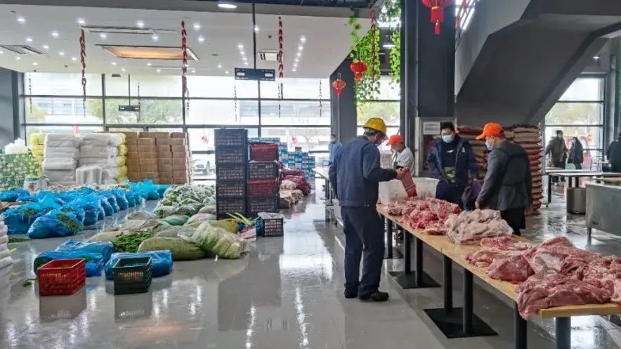 为保障员工基本正常生活,临港产业园多方举措,紧急协调各方资源,确保园区食堂的新鲜食材供应,尽一切力量、高标准落实员工的一日三餐。