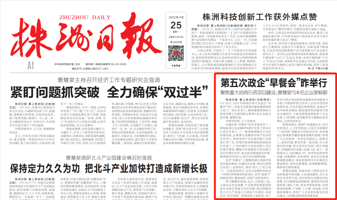 4月24日,株洲市第五次政企“早餐会”上,曹慧泉书记还邀请三一集团株洲城市公司负责人等共进早餐,畅聊项目建设情况,听取他们提出的意见建议。