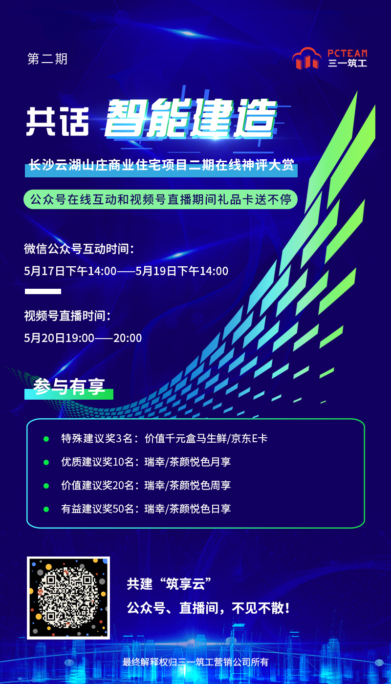 第二期“共话智能建造”主题系列活动——“长沙云湖山庄商业住宅项目”在线互动如期而至【48小时互动期:5月17日下午14:00--5月19日下午14:00】,鼓励各位业内专家多提建设性优化建议和方案,如果创造了更快更好更便宜的经济价值,我们将拿出50%价值贡献跟您分享。另外,感兴趣的行业“玩家”或者希望参与该项目EPC投标的人,此次活动记录是参与该项目的入场券,请大家积极踊跃提意见哦!