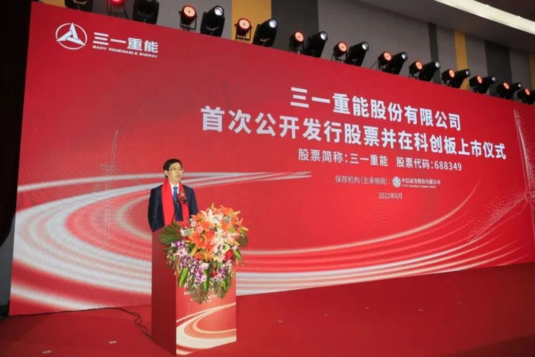 6月22日,三一重能股份有限公司在上海证券交易所科创板鸣锣上市。上市仪式后,昌平区人民政府同三一集团有限公司签署三一在京战略合作框架协议及补充协议。昌平区委副书记、区长支现伟出席,三一集团总裁唐修国主持上市及签约仪式。