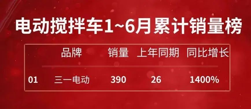 火爆的市场给了“聪明公司”最直接的回应,2021年,三一电动搅拌车、电动起重机销售实现重大突破,取得年度销量冠军,2022年上半年,三一电动搅拌车以390辆的销量,58.47%的市场份额稳居行业第一。