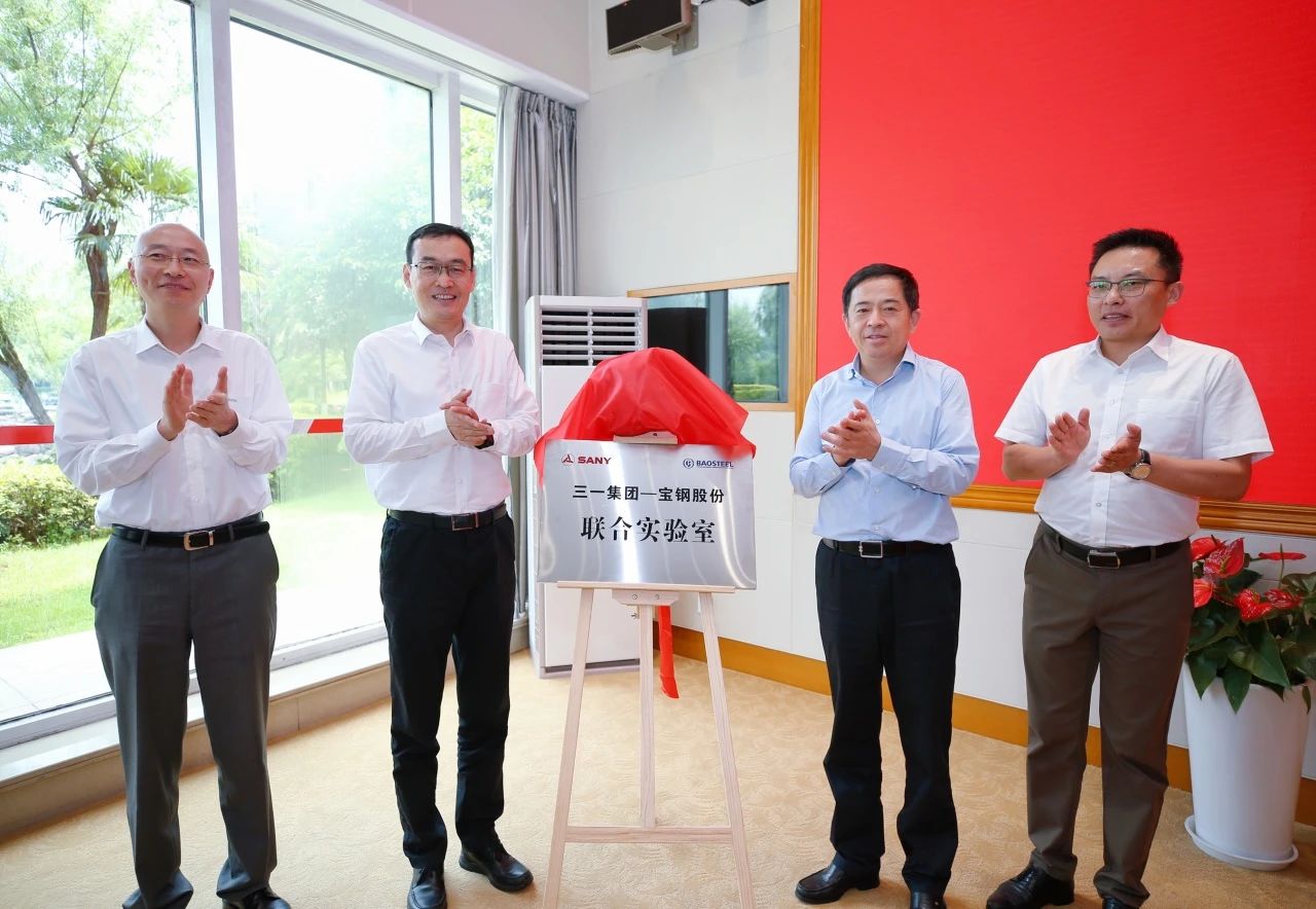 宝武集团党委常委、宝钢股份党委书记、董事长邹继新,三一集团党委书记、董事长、三一重工董事长向文波见证签约并共同为联合实验室揭牌。