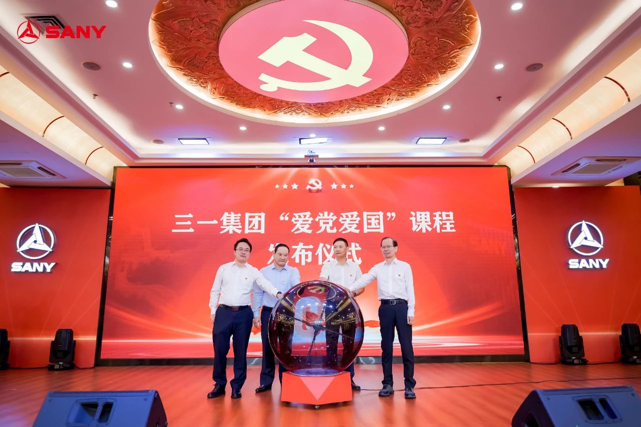 俞宏福、梁林河、黄建龙、人力资源总部总监郭瑞广共同发布三一集团“爱党爱国”课程。