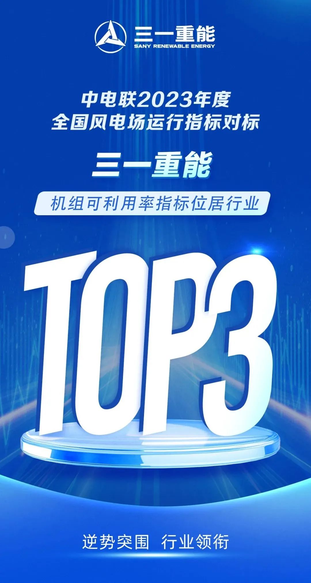 近日,中国电力企业联合会(以下简称:中电联)正式公布了2023年度电力行业风电运行指标对标结果。在全国区域机组可利用率指标最优主机厂榜单中,三一重能逆势突围、闯入前三。曾经世人眼中的的行业“黑马”正在用每年不断刷新的纪录,成为中国风电的“常青树”。
