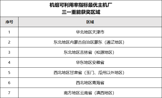 在机组可利用率指标最优主机商名单中,共有22家海内外风电整机商上榜,三一重能凭借7个对标区域机组可利用率指标最优,名列第三,远超行业平均水平。