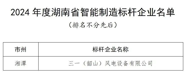 近日,湖南省工业和信息化厅发布了2024年度湖南省智能制造标杆企业和标杆车间名单,三一(韶山)风电叶片工厂荣登“湖南省智能制造标杆企业名单”。