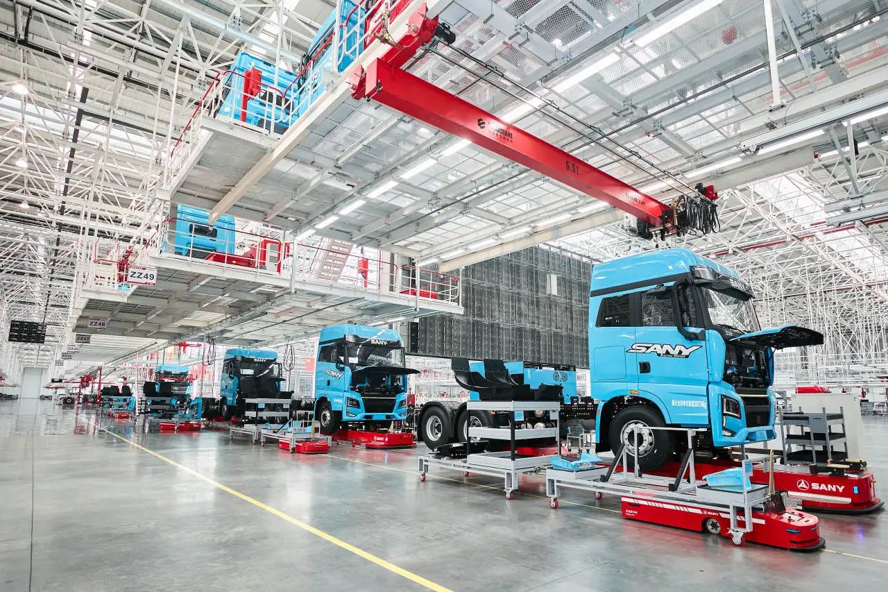 其中,三一重卡数字化转型升级项目基于重卡整车生产过程中多环节工艺流程,部署智能制造装备,以5G+工业互联网技术平台为基础,打造自动化式生产线,应用模块化技术,实现产线的柔性化配置,实现多类型产品的自动化混线生产,同时选取行业先进的仓储、物流等工艺环节智能生产装备,大幅提高产线设备的柔性、可拓展性、多车型的兼容性,实现数字化转型在研发设计、制造设备、生产管理、市场营销等环节的示范应用,打造了一条年产能4万台的智能网联重卡自动化混合生产线。