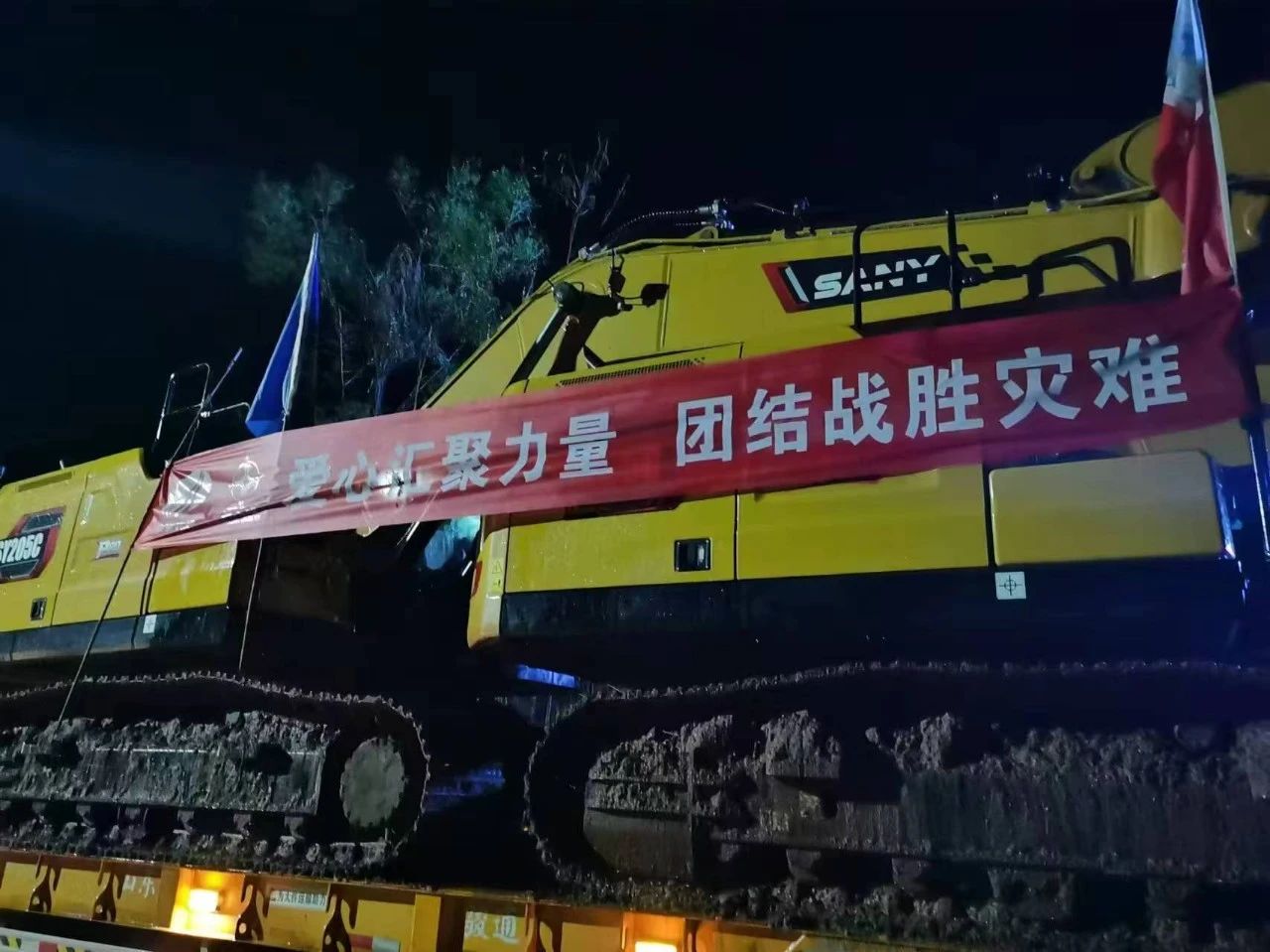 在应急管理部门指导下,三一迅速响应,调度起重机、挖掘机、装载机、重卡、自卸车等设备全方位驰援。