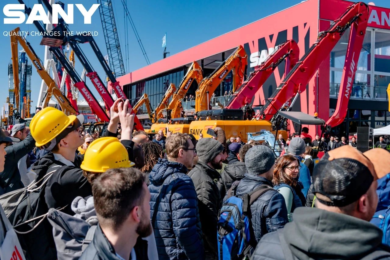 来自全球的专业观众络绎不绝,人潮涌动间,汉语、英语、德语、西班牙语、意大利语、法语等十余种语言在此交汇,相机快门声与热烈交谈声交织成对三一创新技术的赞叹。