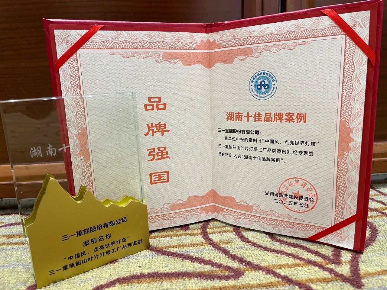 在备受瞩目的“湖南十佳品牌案例”评选中,《“中国风,点亮世界灯塔”三一重能韶山叶片灯塔工厂品牌案例》从众多参评项目中脱颖而出,荣膺“湖南十佳品牌案例”并摘得榜首。