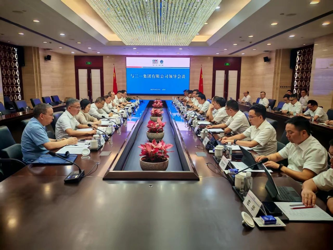 葛洲坝集团副总工程师,战略与运控部、生产经营管理事业部、科技数智装备事业部、资本与金融事业部、绿色智能建造研究院、三峡建设公司负责人;三一集团副总裁、三一工车董事长周国元,三一集团副总裁、三一重起总经理谢涛,大客户公司、营销赋能总部、三一重机营销公司、三一重装营销公司、三一工车营销公司、桩机研究院、三一装载机营销公司、三一泵送营销公司负责人参加座谈。