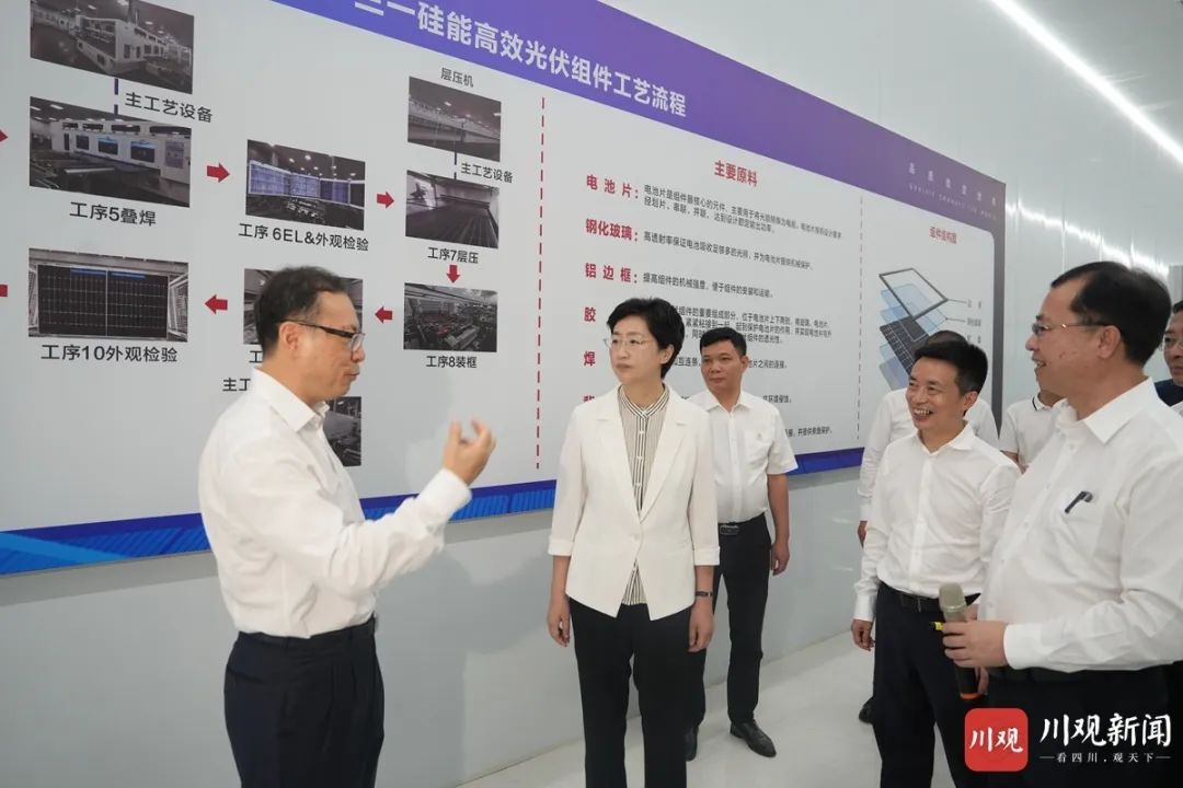 8月20日,省委副书记、省长施小琳在三一硅能(巴中)有限公司,调研高效晶硅光伏组件生产销售情况。