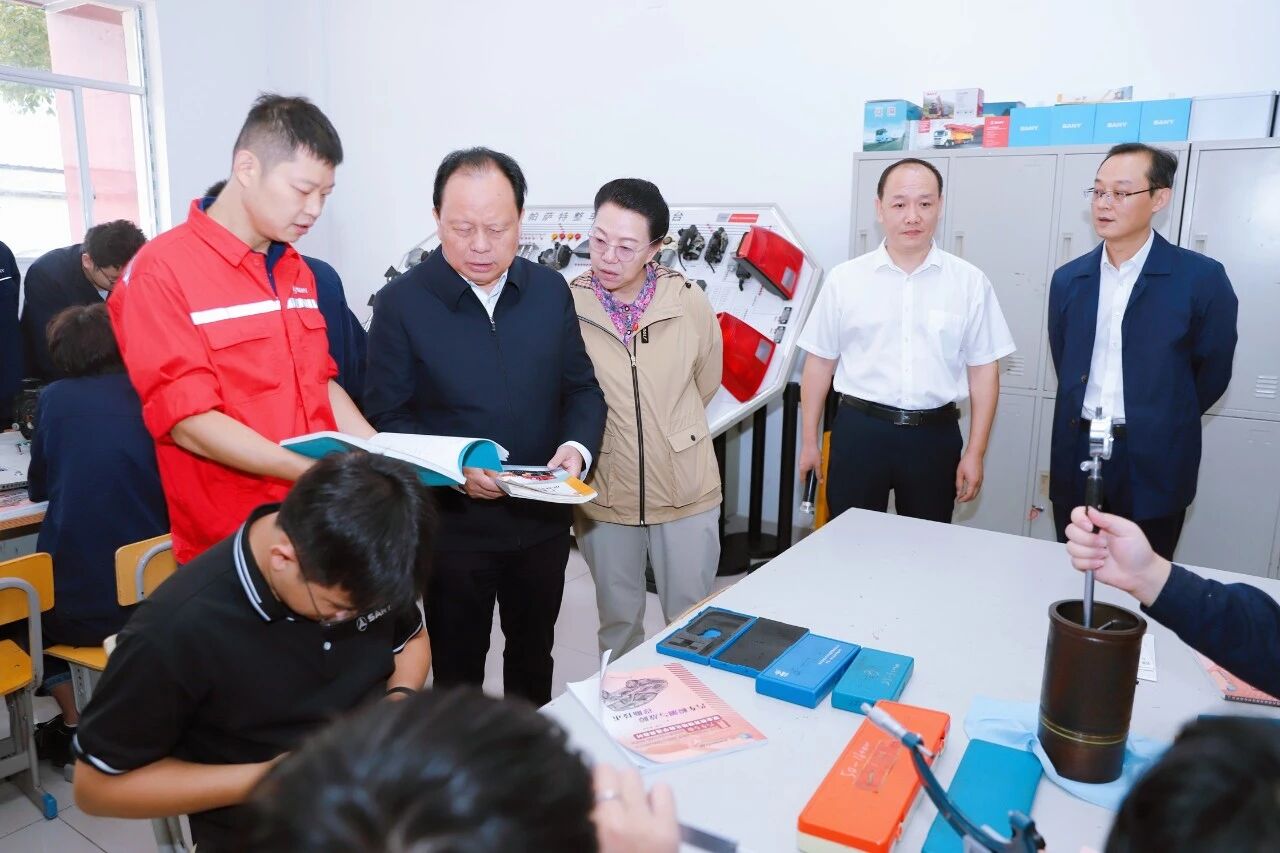 随后,调研组在湖南三一工匠学院详细听取了企业深化产业工人队伍建设改革和工匠学院建设的专题汇报,走进实训车间和技能大师工作室,现场察看学员实操训练情况,与正在进行智能焊接、工业机器人编程实训的师生亲切交流。