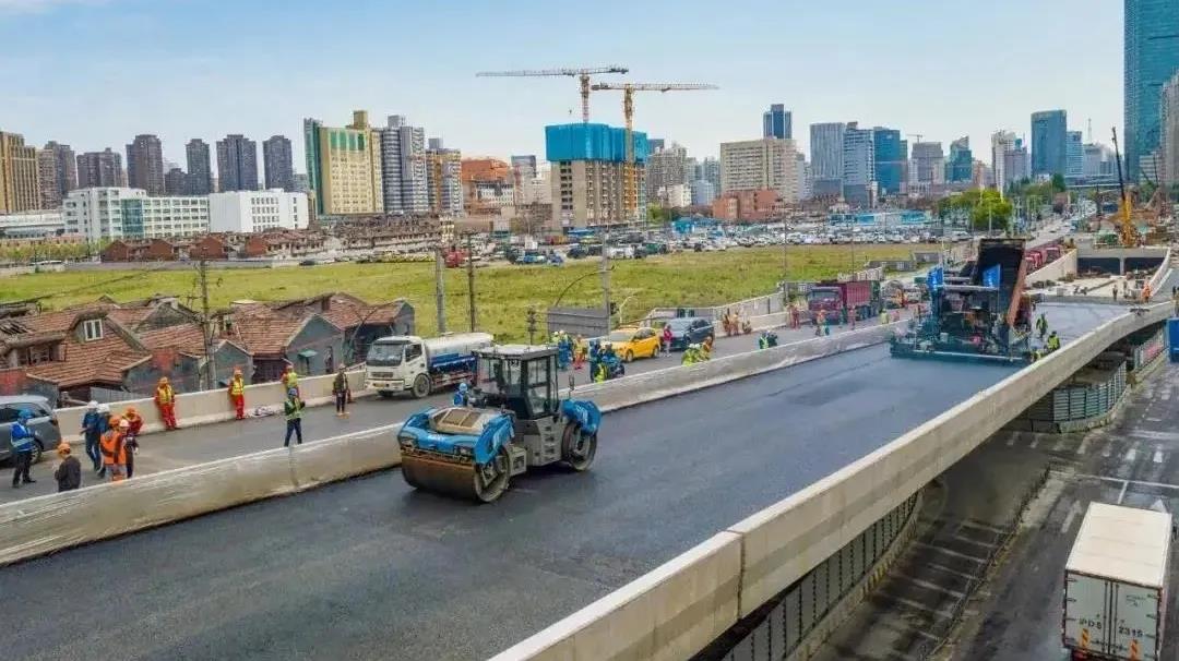 今年年初,在上海海宁路北横通道高架上,三一2台摊铺机,3台双钢轮压路机国内首次在高架桥、大坡度工况下完成无人作业,以长时间、高精准施工验证了三一无人装备的可靠性。