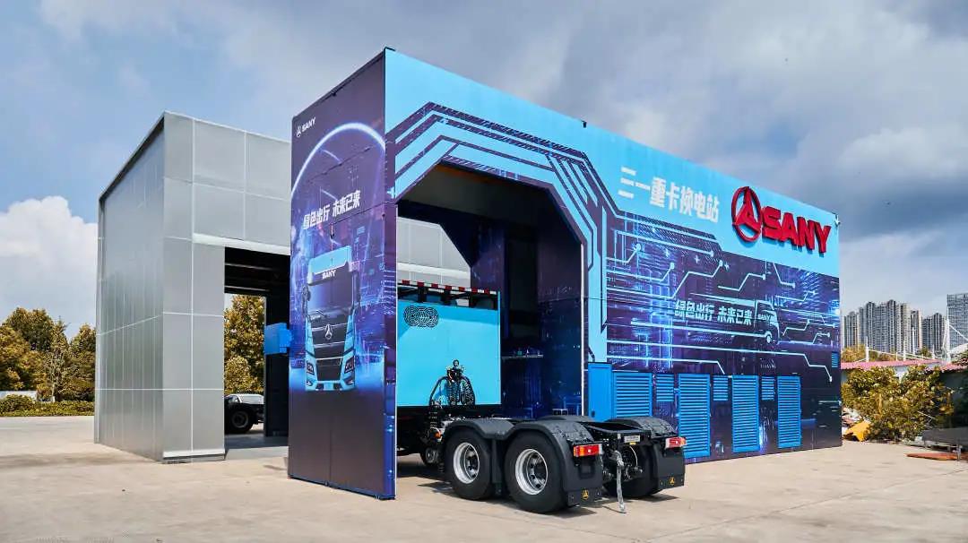 产品性能方面,三一新能源重卡拥有动力性能强、智能水平优、续航里程长、充电时间短等优势,其换挡平顺性、爬坡、加速等指标保持领先。此外,其搭配的智能换电站能5分钟自动完成换电,备受市场青睐。