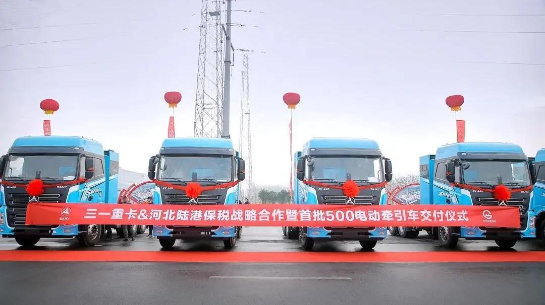 11月28日,三一重卡与河北陆港保税物流公司在河北武安签署500台新能源卡车战略采购协议。武安市政府党组成员、工业园区党工委书记、管委会主任胡存喜,河北陆港保税物流有限公司董事长张城久,三一集团副总裁周万春等出席签约仪式。