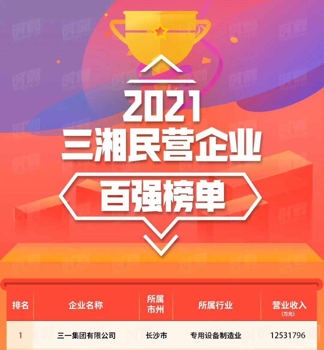 12月28日,湖南省人民政府举行第一届“新湖南贡献奖”和“2021三湘民营企业百强榜”发布会。三一集团荣获“新湖南贡献奖先进集体”称号,并荣登三湘民营企业百强榜榜首!