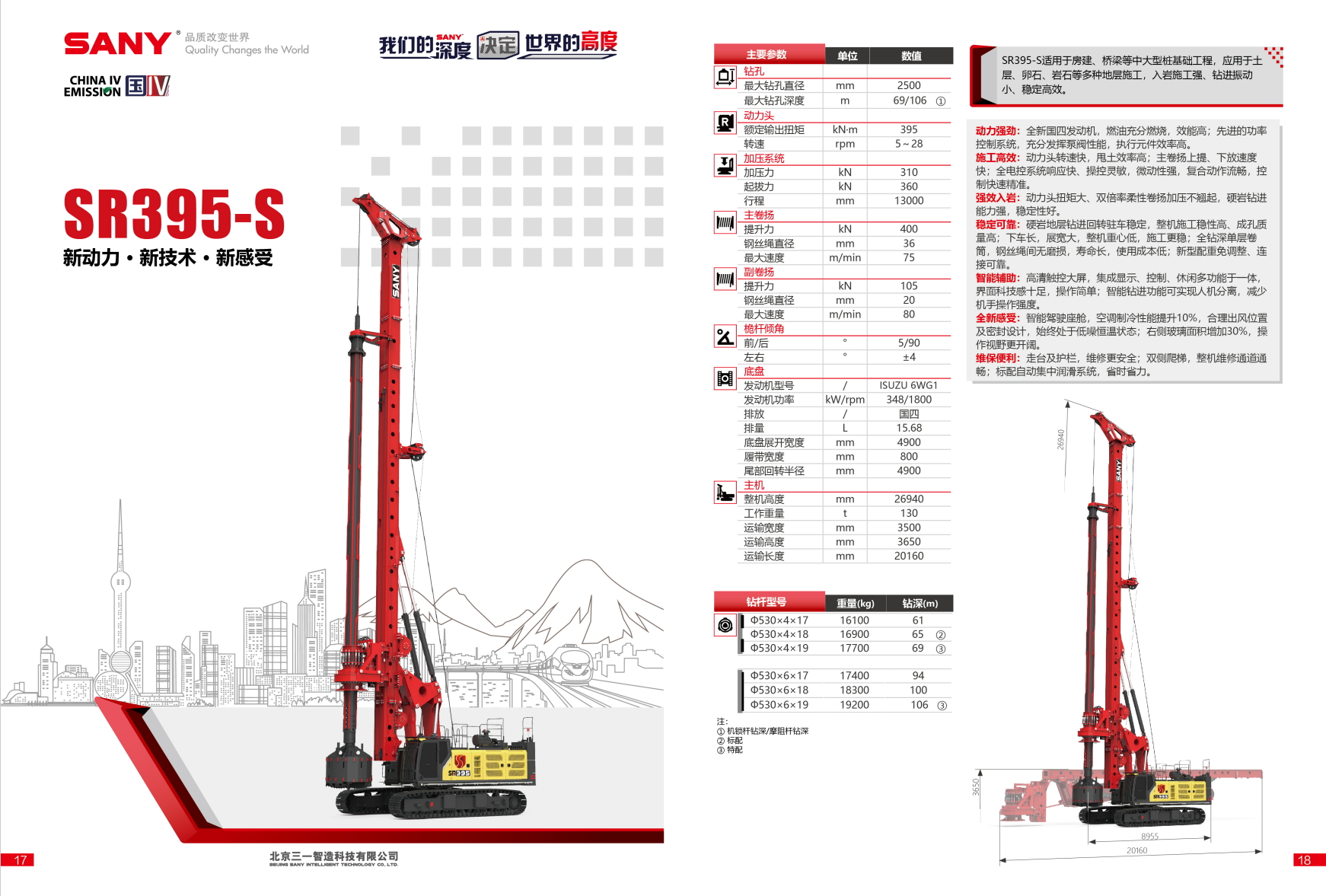 SR395-S适用于房建、桥梁等中大型桩基础工程,应用于土层、卵石、岩石等多种地层施工,入岩施工强、钻进振动小、稳定高效。