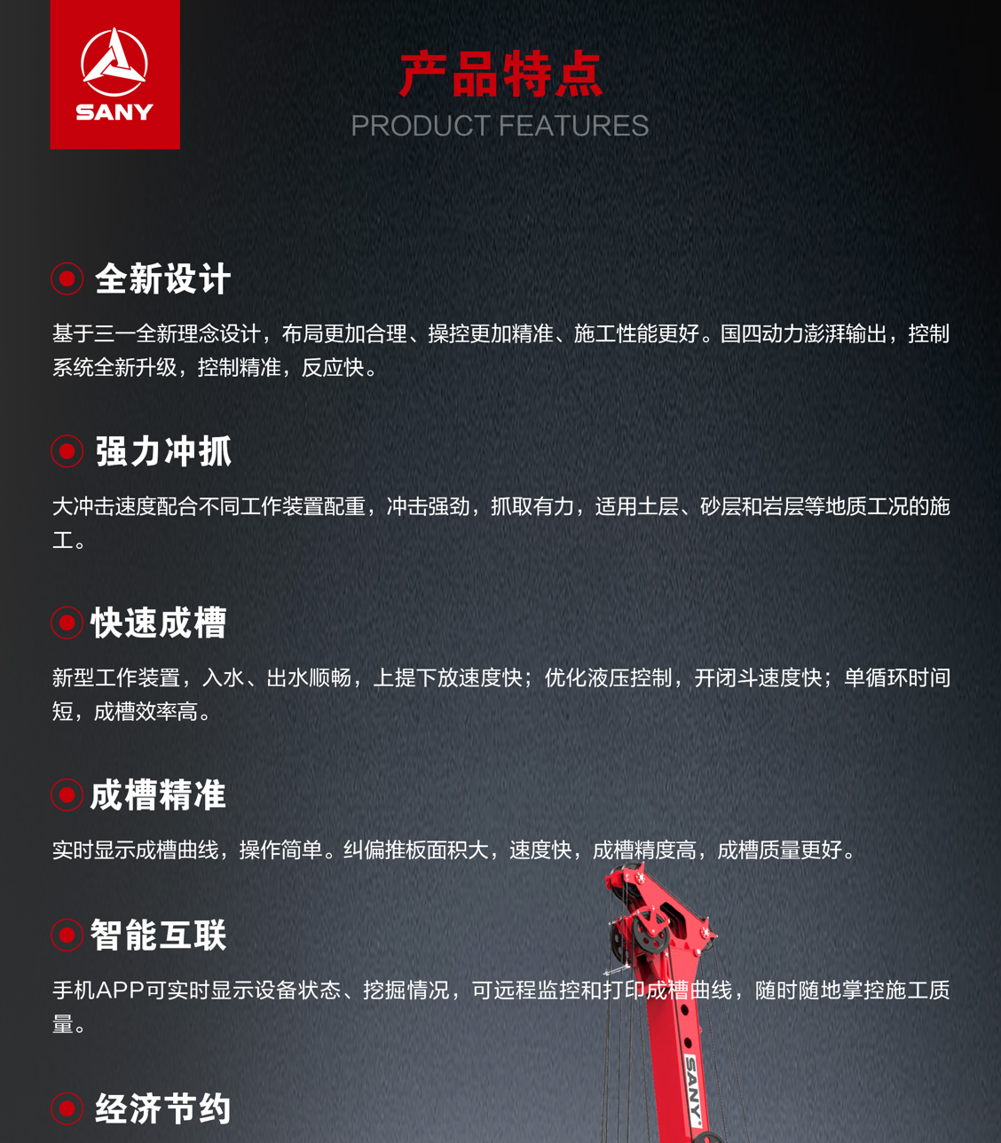 SH750-S是全新一代大型地下连续墙成槽专用施工设备,广泛应用于地铁、机场、旧城改造、水利建设等地下墙体或基坑工程。