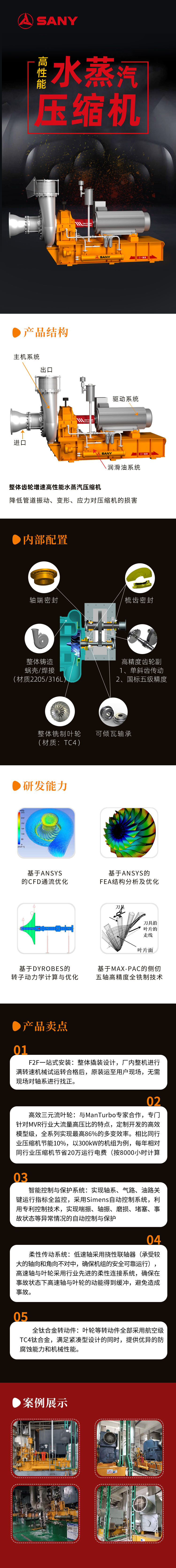 高效三元流叶轮:与ManTurbo专家合作,专门针对MVR行业大流量高压比的特点,定制开发的高效模型级,全系列实现86%的多变效率。