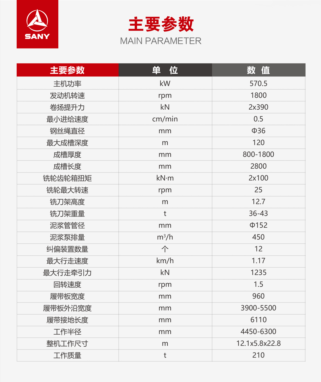 双轮铣槽机是用于地下空间领域施工的硬地层成墙设备,也可用于方桩施工,主要应用于轨道交通车站、高层建筑深基坑支护、水利水电工程等建设的连续墙施工。